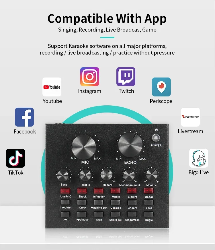 • Professional Audio Condenser Mic :The BM800 V8 Sound Card Set comes with a professional audio condenser mic that ensures high-quality sound recording.