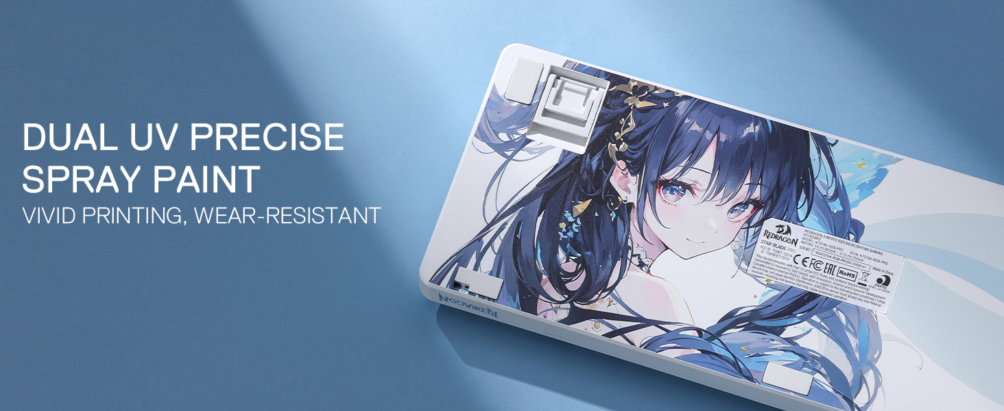 Redragon Anime Girl OUT - Here comes the adorable and reliable ally of Redragon, personalized waifu character Eisa reporting! 5 sides Dye-Sub PBT keycaps covered with themed patterns and elements offer unparalleled touch and vibe.