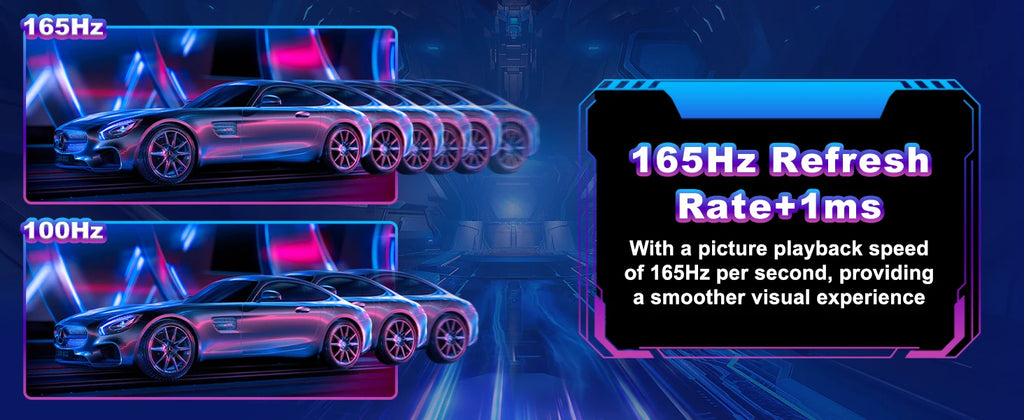 1. 165Hz Refresh rate, compatible 144Hz, smoother and never stuck.