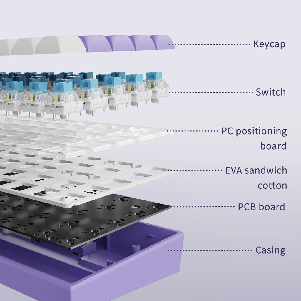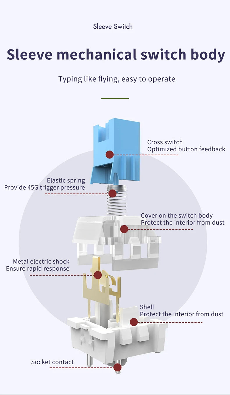 • Hot Swap Feature :The hot swap feature allows you to customize your typing experience by easily switching between different key switches.