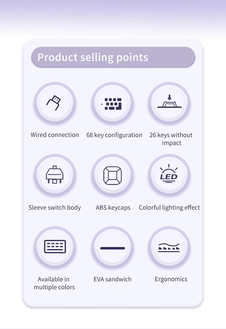 • 68-Key Standard :This keyboard adheres to the standard 68-key layout, providing all the necessary keys for a seamless typing experience.