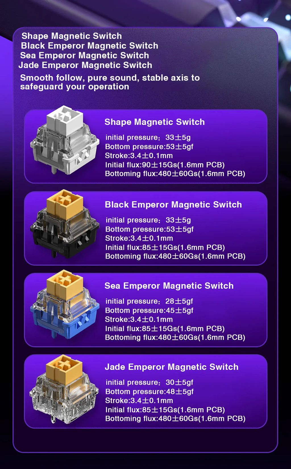 Experience rapid triggers with AULA HERO 68HE's magnetic switches, designed for esports gamers seeking quick response times
