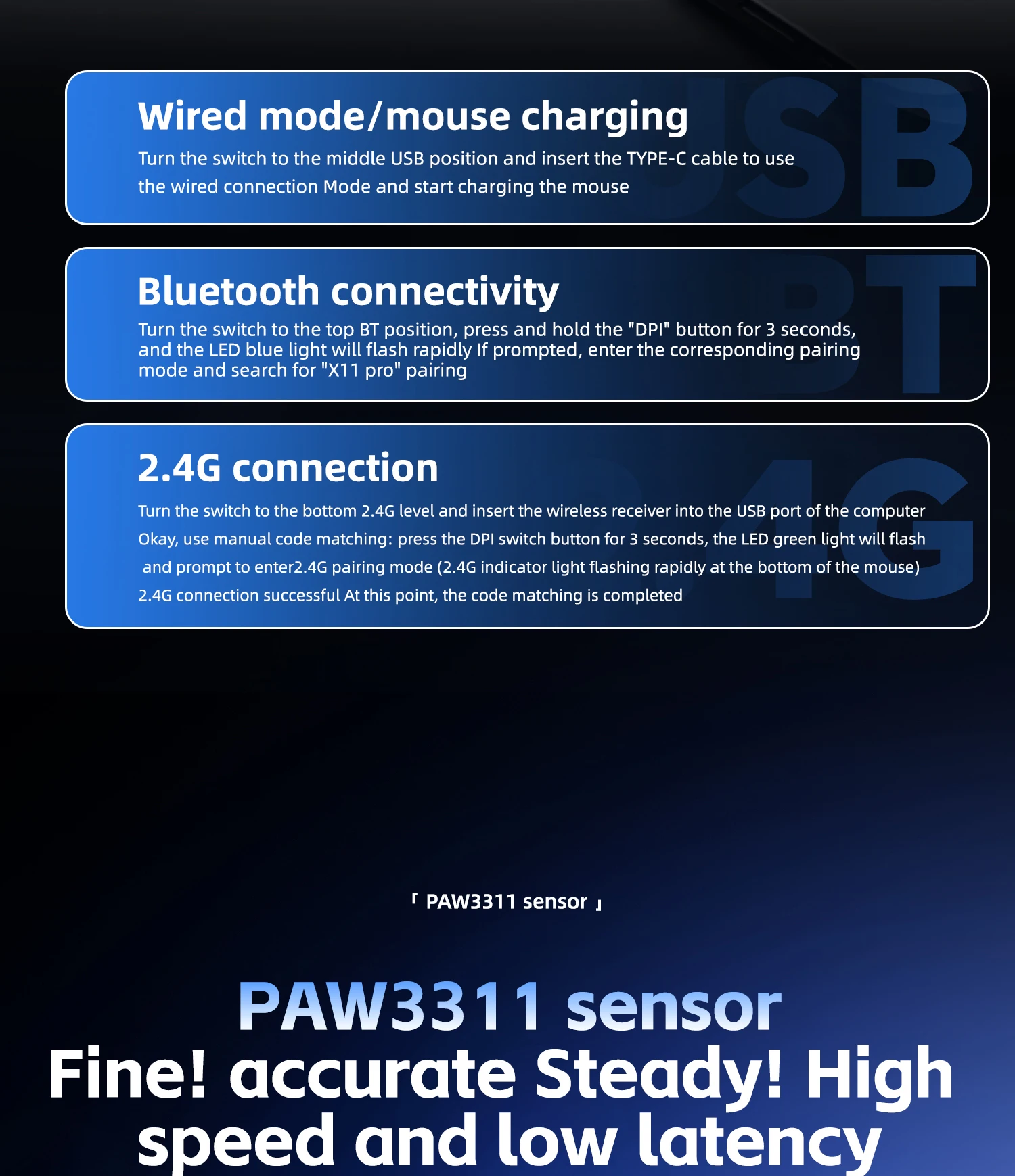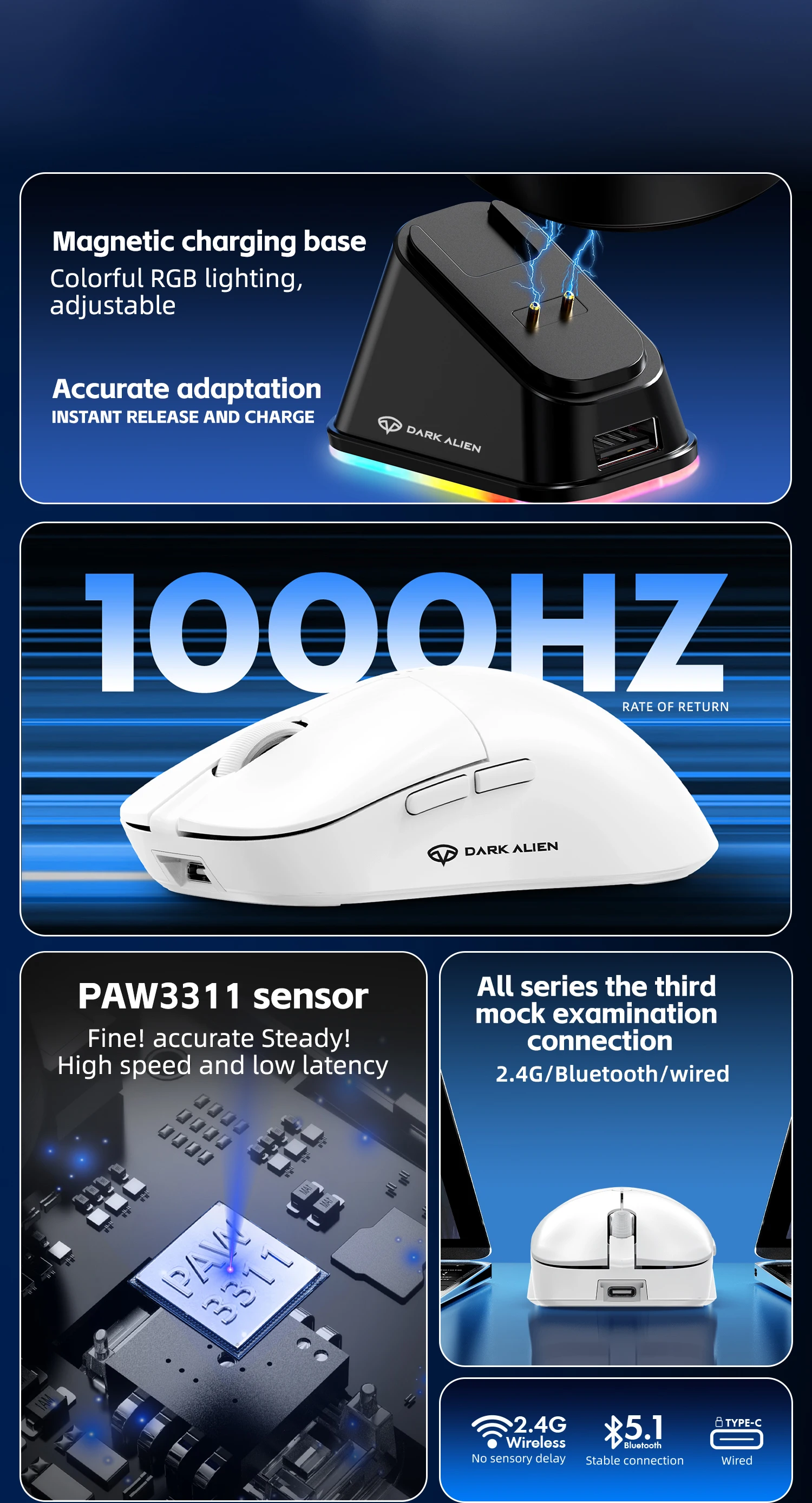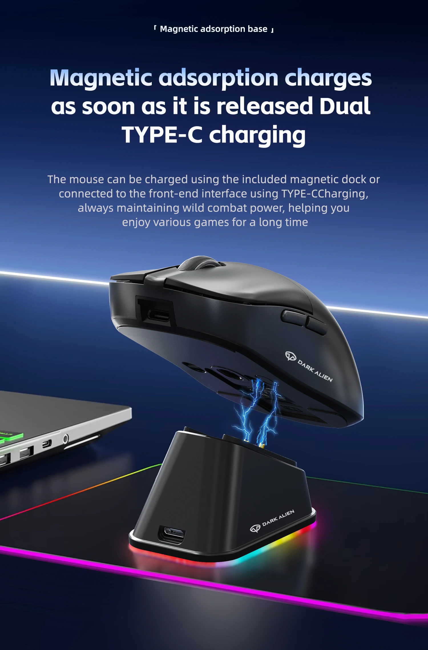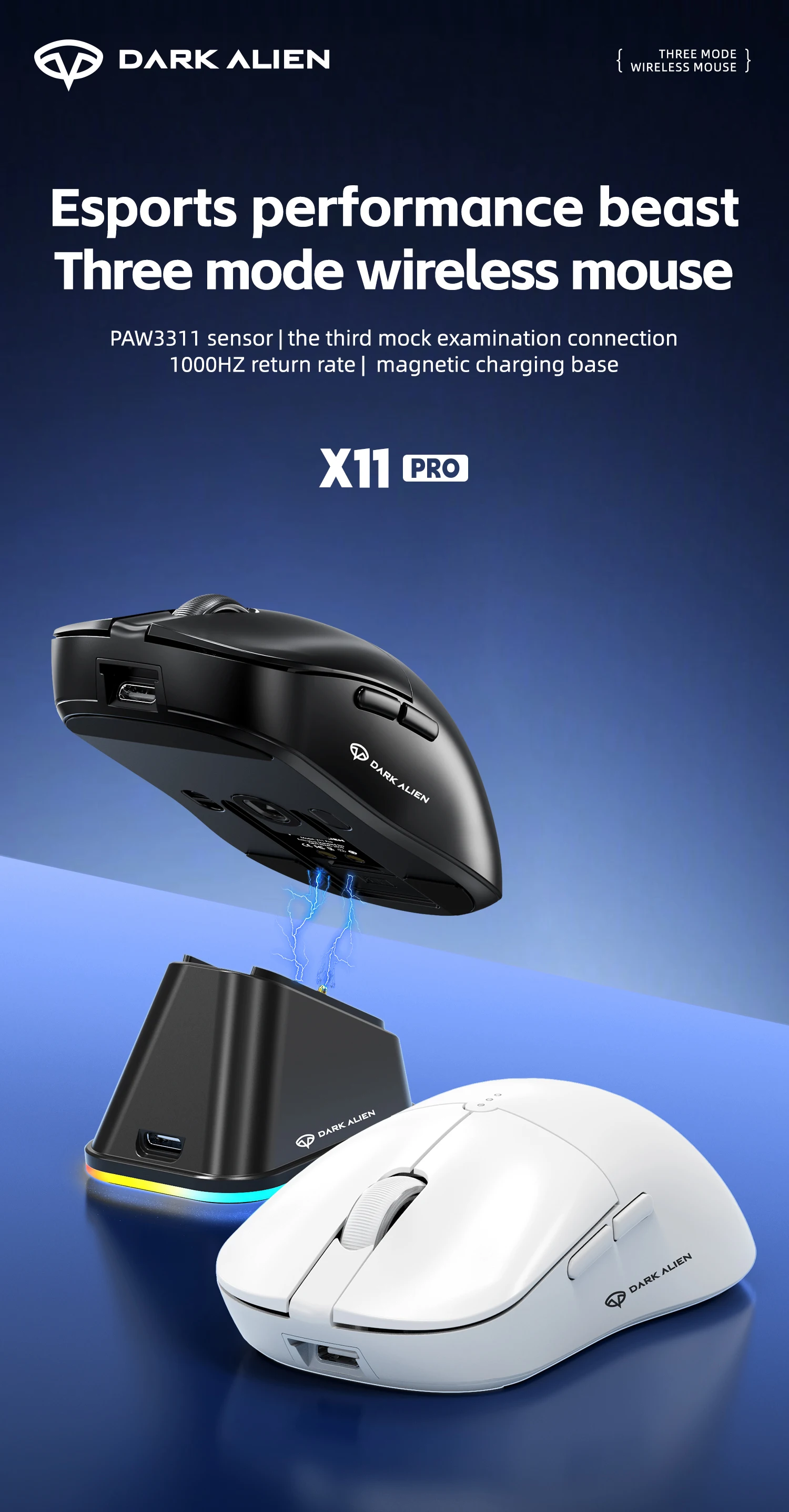 DARK ALIEN X11 Pro Wireless Mouse,Bluetooth/2.4G/wired Tri-Mode Mouse ,PAW3311 RGB Magnetic charging dock Gaming Mouse