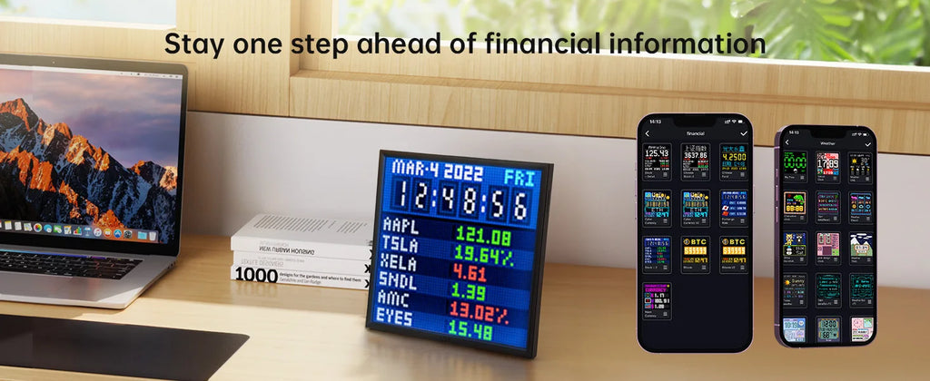 Stay ahead in the game with the Pixoo 64. Using its WiFi connection, it will automatically fetch the online financial information, and display your selected stock or cyber currency prices. You will not miss important financial information. We will also consider adding in other stock markets through later updates.