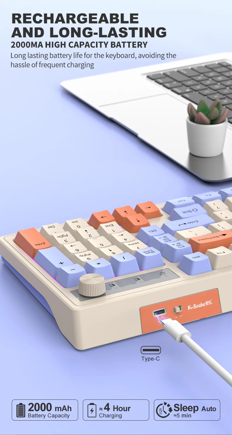 Dual Bluetooth Mechanical Keyboard Dual Modes BT5.0 2.4G Wireless Keyboard RGB Backlight Gaming Keyboard For PC Laptop Tablet