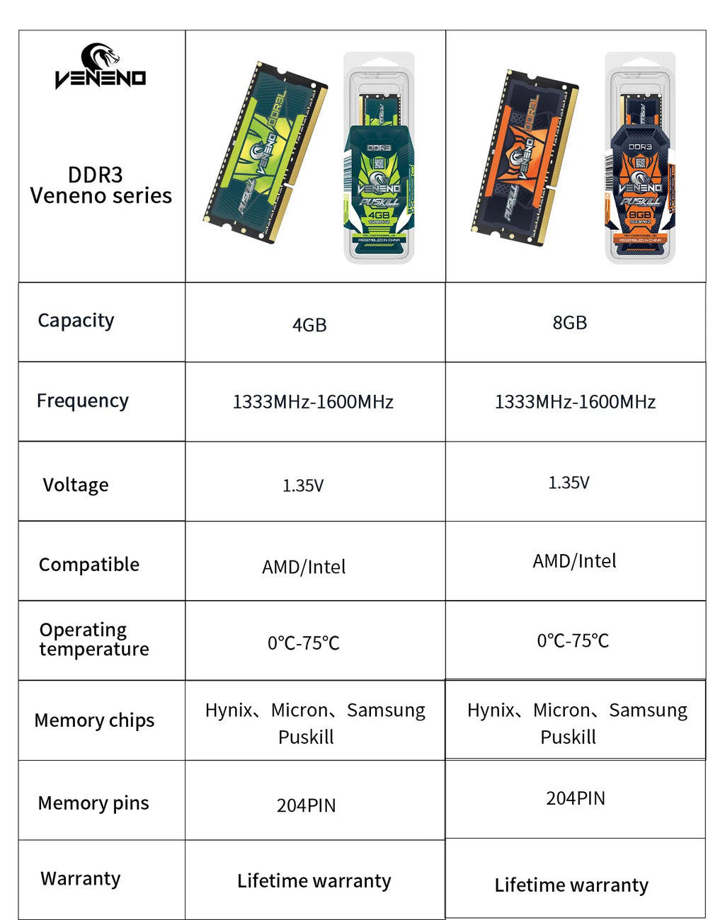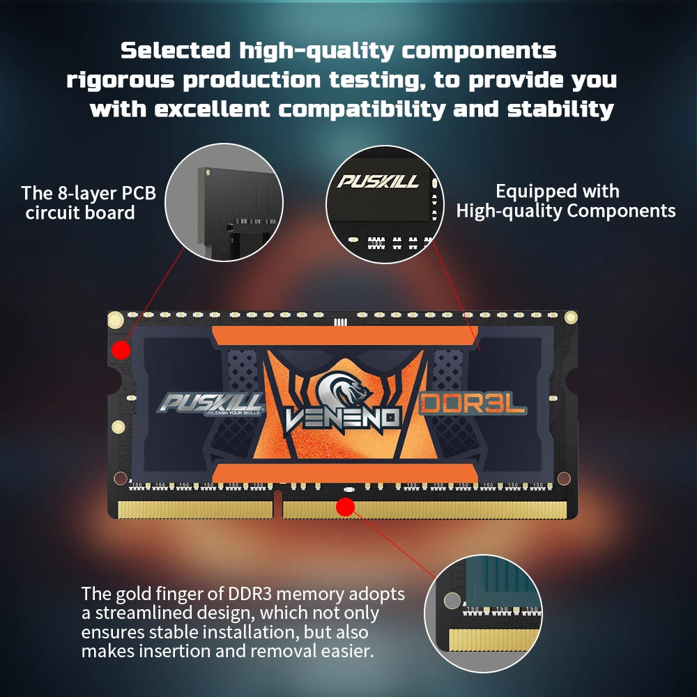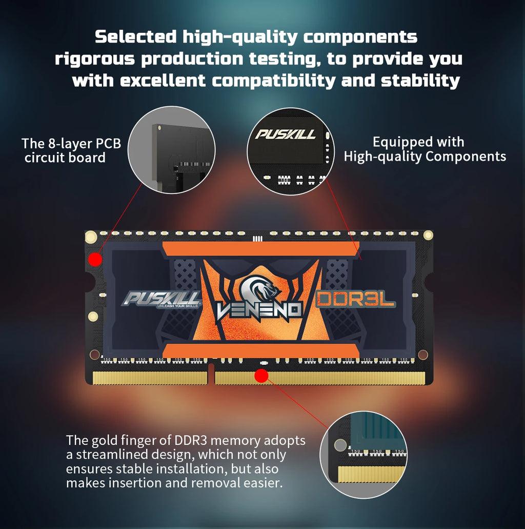 • Product: Puskill VENENO Notebook Memory 4/8gb Ddr3 1600/1333mhz Cl11/Cl9