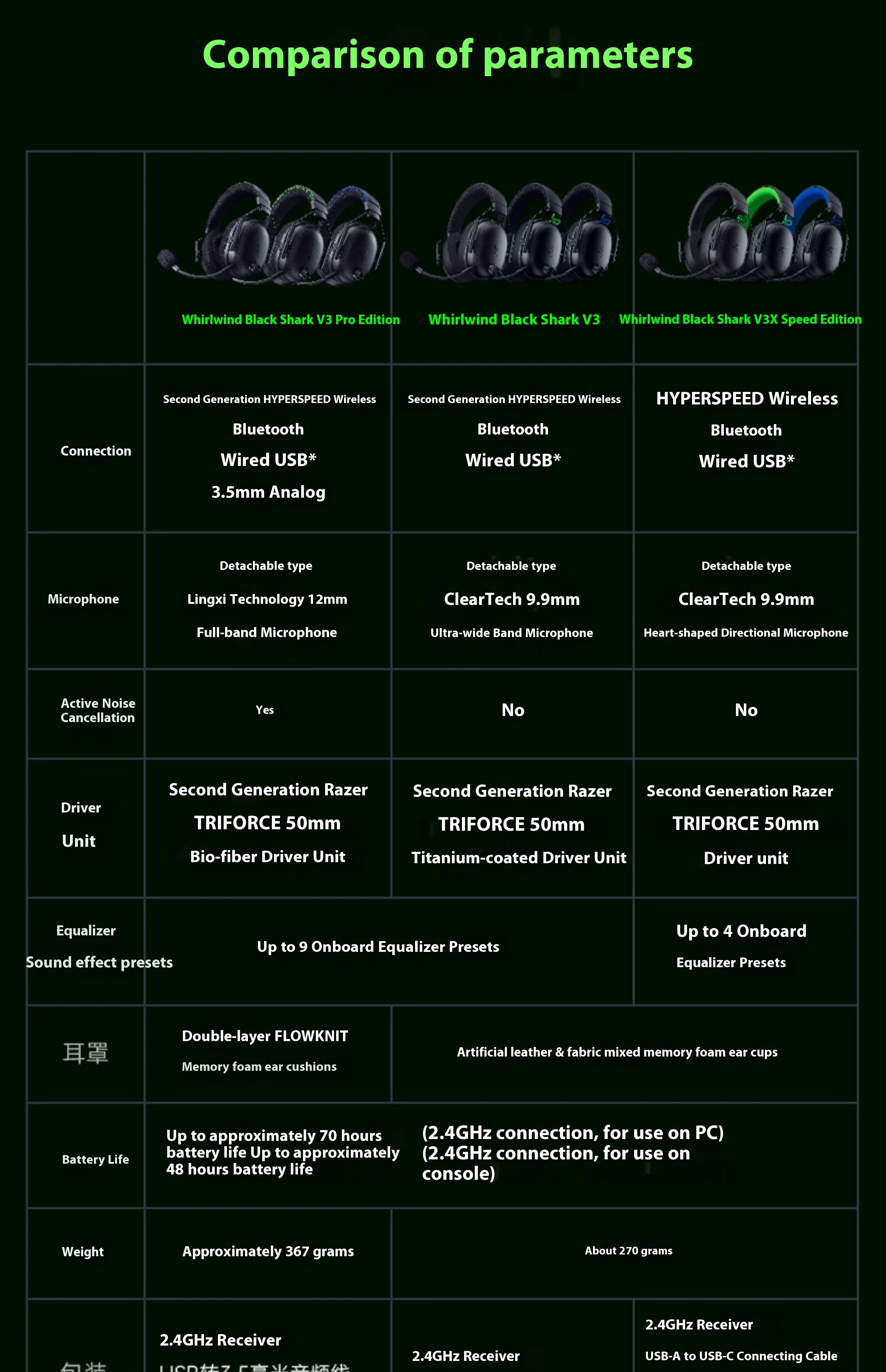 Razer Blackshark V3 PRO Headphones Wireless Tri-mode Professional Esports Gaming Earphones with Mic Noise Reduction Headsets