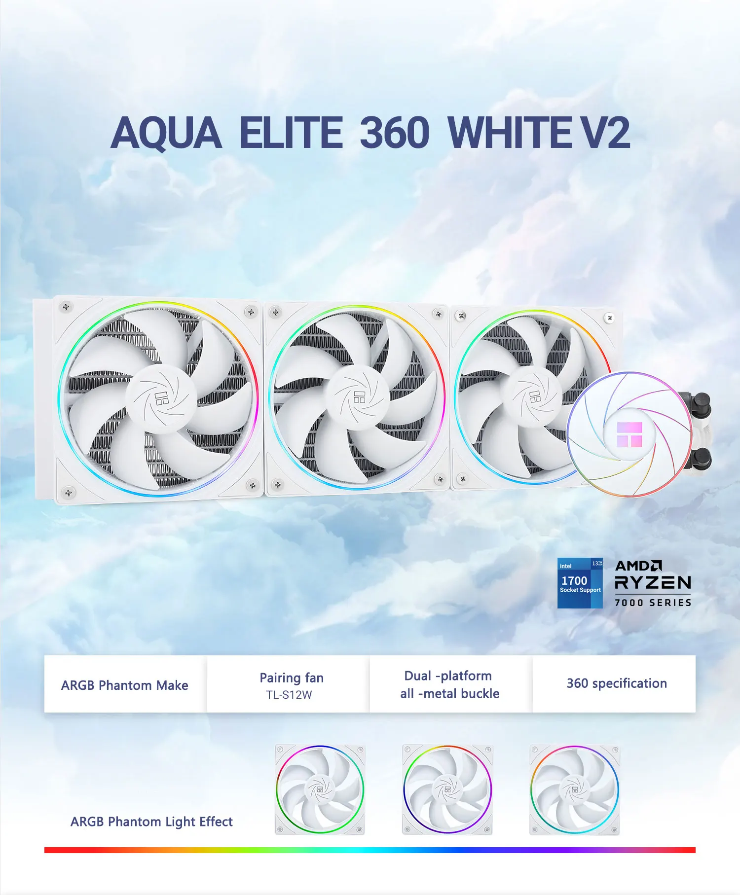 Thermalright AQUA ELITE 360 V2 White ARGB Liquid Cooler 5V 3PIN CPU Fan Integrated Water Cooling Radiator For LGA1700 115x AM5