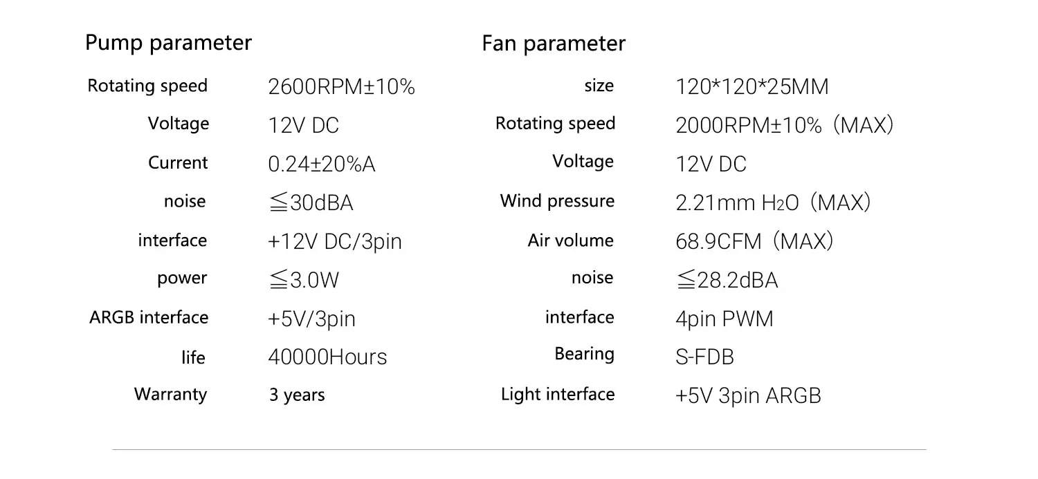 Pump Interface: 4PIN,5v-3pin ARGB