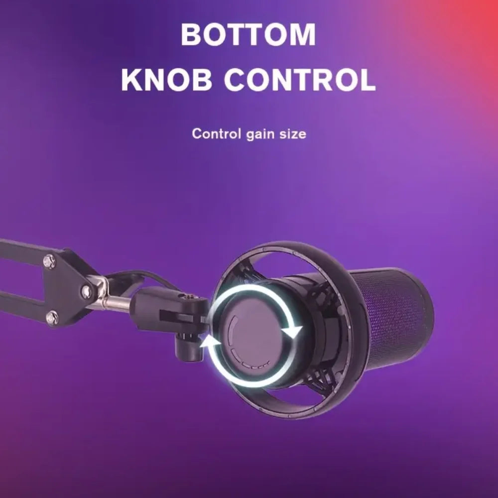 USB Condenser Microphone RGB Esports Game Call Recording Condenser Mic with Metal Boom Stand Desktop Mic for Studio Recording