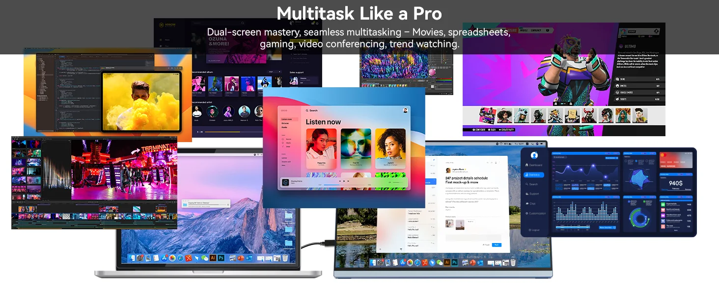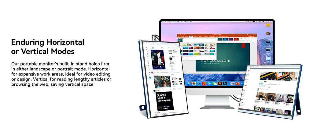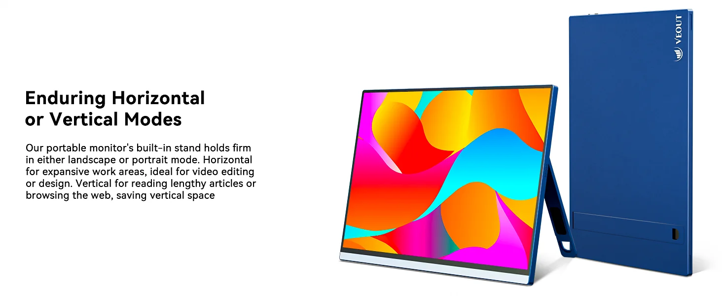 • Multiple Display Mode: This portable computer monitor supports duplicate, extended, second screen, and vertical display mode, bringing high efficiency to your meetings, work from home, and travel. Having a second monitor for laptop significantly enhances your multitasking abilities, allowing you to handle multiple tasks with ease!