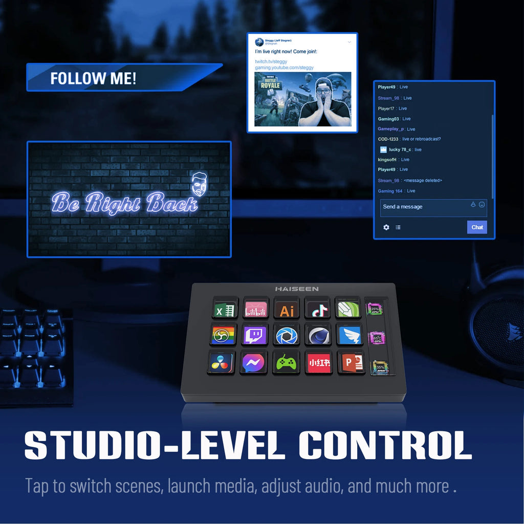 Visual Stream HAISEEN Dock Keyboard LCD Button 15Keys Live Content Creation Controller Customizable Windows/MacOS/Android/iOS