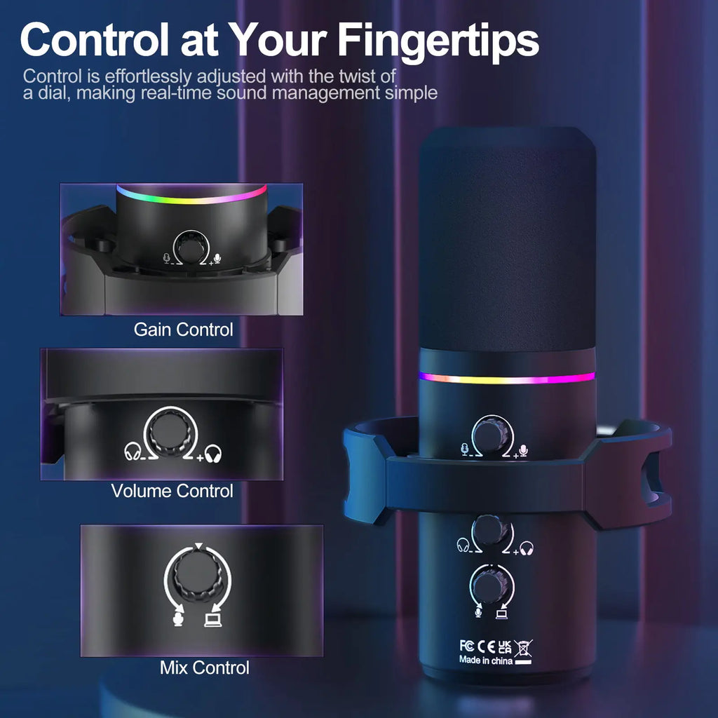 XLR/USB Dynamic Microphone Kit, PC Microphone for Streaming, Podcasting, Gaming, RGB, Mute and Noise Cancelling Function, Volume