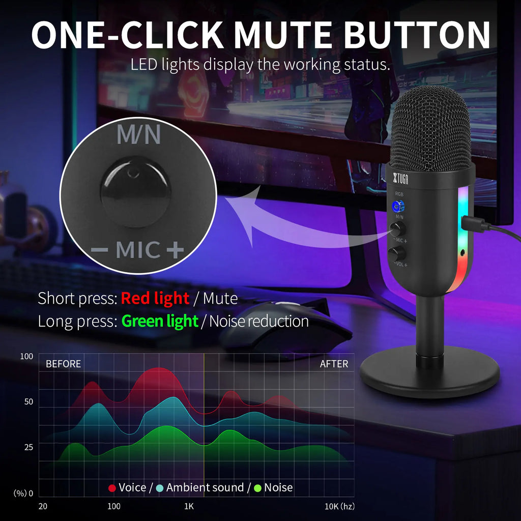 [One-click mute] The PC microphone for podcast also features a quick mute functionality with built-in LED light that helps indicate the status of the USB mic. Elegant features and controls on the podcast mic is suitable for gaming, speech, podcasts, ASMR and voice over applications.